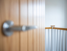 - Solid-core doors made from A-grade American white oak veneer with brushed steel handles