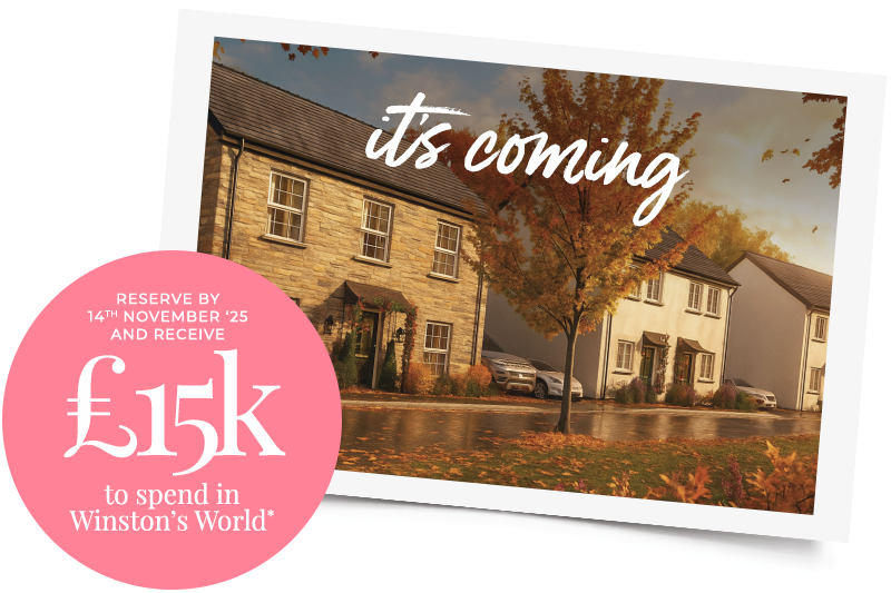 Fall for a bunnyhome this autumn and be home in time for Christmas! Reserve your new home at The Watchmaker's in Bodmin, Bramble Lane in Kilkhampton, Primrose Fields in Appledore, or Church Lane in Cheriton Bishop by 14th November 2025 and you'll receive an amazing £15,000 to spend in Winston's World! *T&Cs apply.