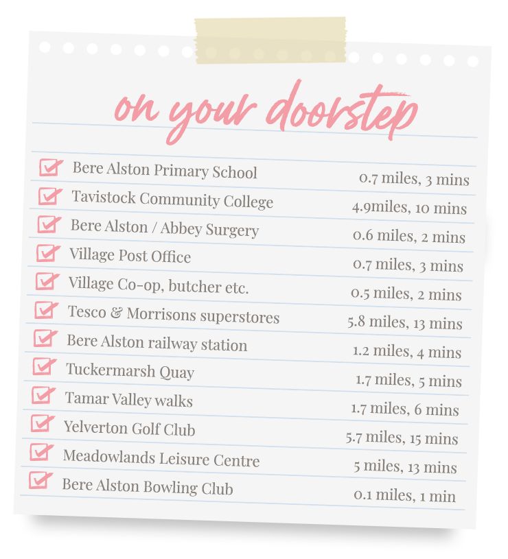 For excursions further afield, Bere Alston has great road links as well as its own railway station with trains to Plymouth, Exeter and Bristol, all of which have direct routes into London Paddington — and airport connections in Exeter and Newquay make wider travels a breeze.