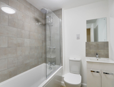 - Crafted Porcelanosa tiles to full height around bath and shower