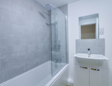 - Crafted Porcelanosa tiles to full height around bath and shower