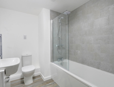 - Crafted Porcelanosa tiles to full height around bath and shower