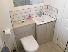 - Boutique-style bathroom fitted with vanity units for extra storage