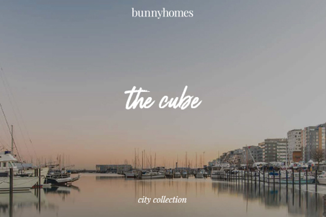 The Cube is a city living one-bedroom apartment with a modern, open-plan design, dedicated home office area, separate bedroom and bathroom, its own entrance balcony, and large windows allowing natural light in from three aspects.