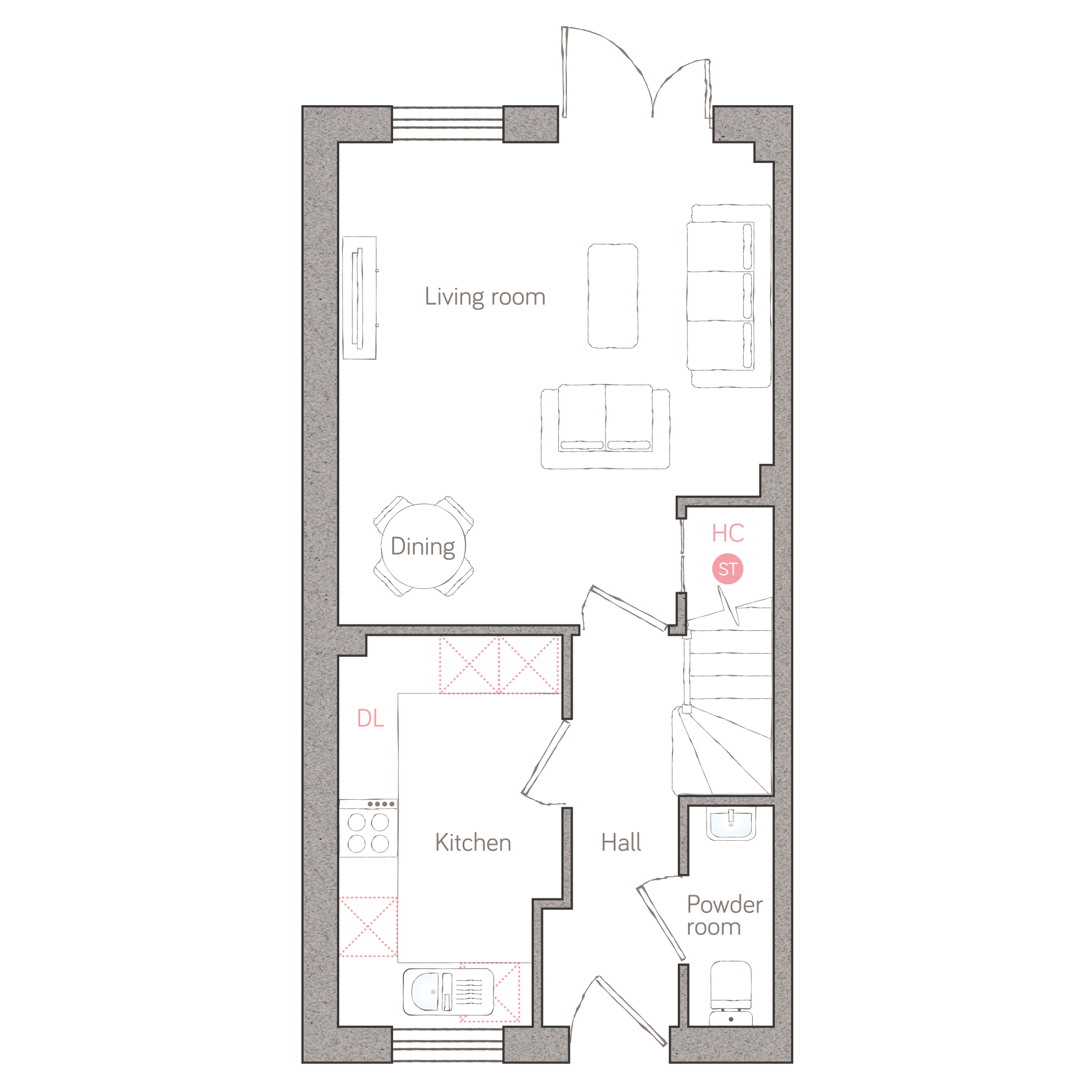 Storage    DL Demi-larder    HC Housekeeper's cupboard    LC Linen closet     Appliance     Air source heat cylinder