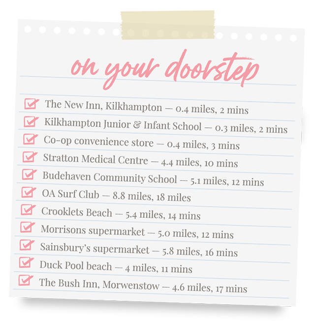 Community spirit is in abundance here. You can see it and feel it in the atmospheric pubs, both of which serve home-cooked food and local ales. Other essential village amenities include a primary school, convenience stores, a butcher's, a traditional fish & chip shop, a hairdresser's and more — all an easy, level, 5-minute walk from Bramble Lane. The monthly Hartland Farmers Market can’t be missed. Just a short drive away, it’s the perfect place to mooch and browse locally grown produce and crafts all made within a 25-mile radius. Even closer to home, why not grab a cheeky cake or a homemade pasty or enjoy a long grazy lunch at the Little Pig farm shop on the way to Bude, the nearest town where the locals nip for a ‘big shop’ or a ‘big night out’.