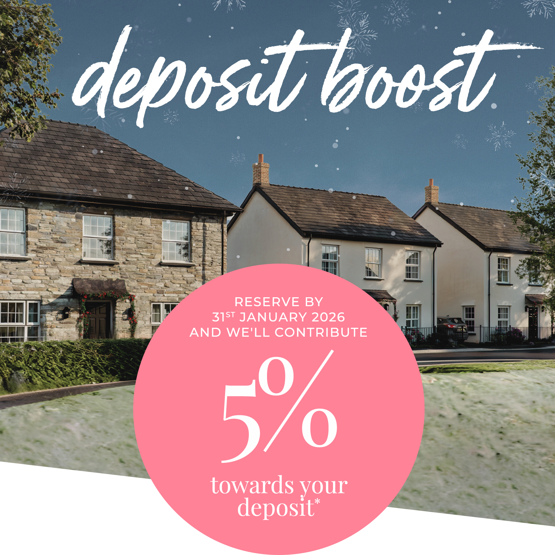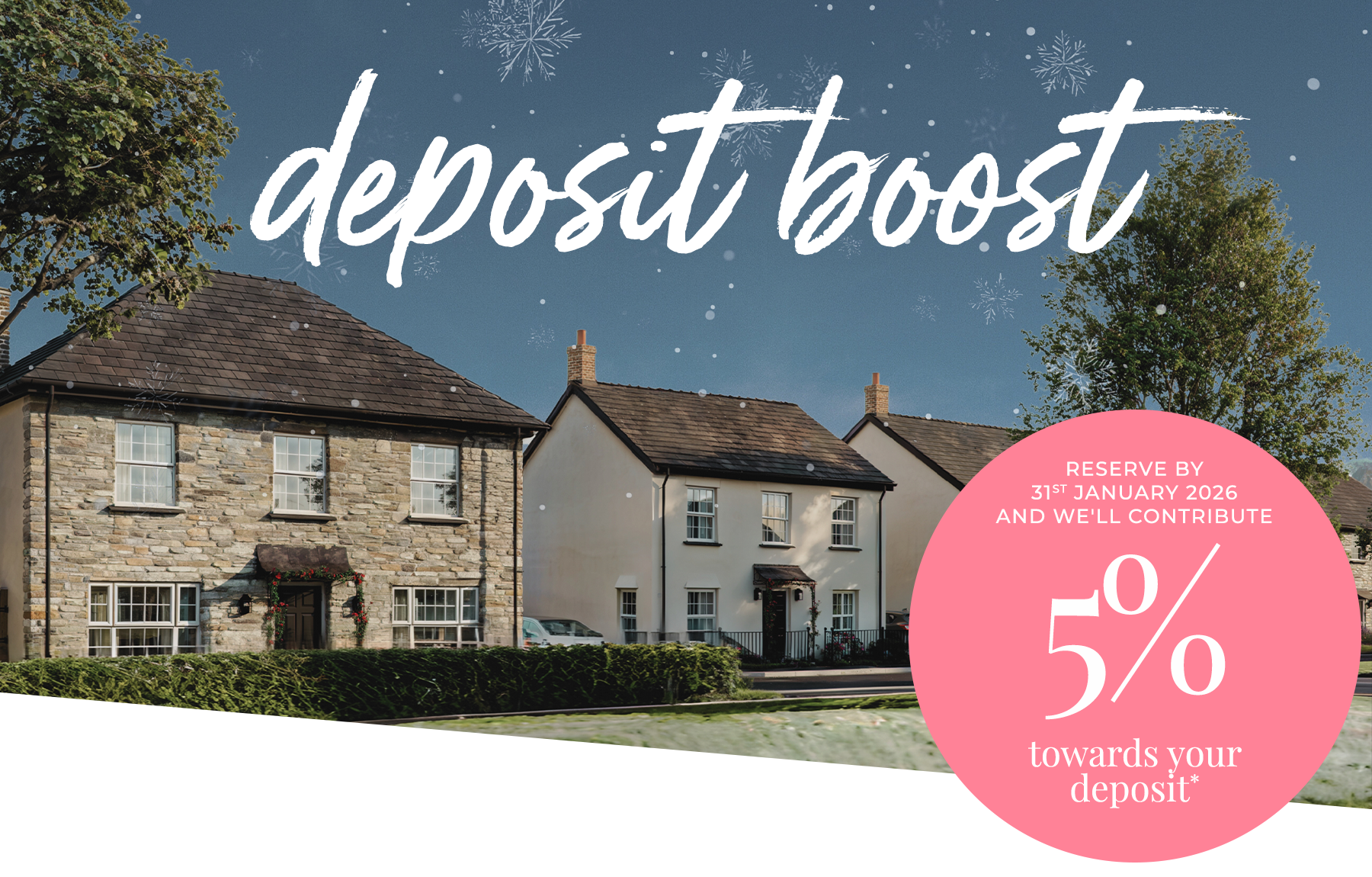 Offer available on selected plots only. Deposit Boost contribution is up to 5% of the sale price, payable at completion, and subject to lender criteria. *T&Cs apply.